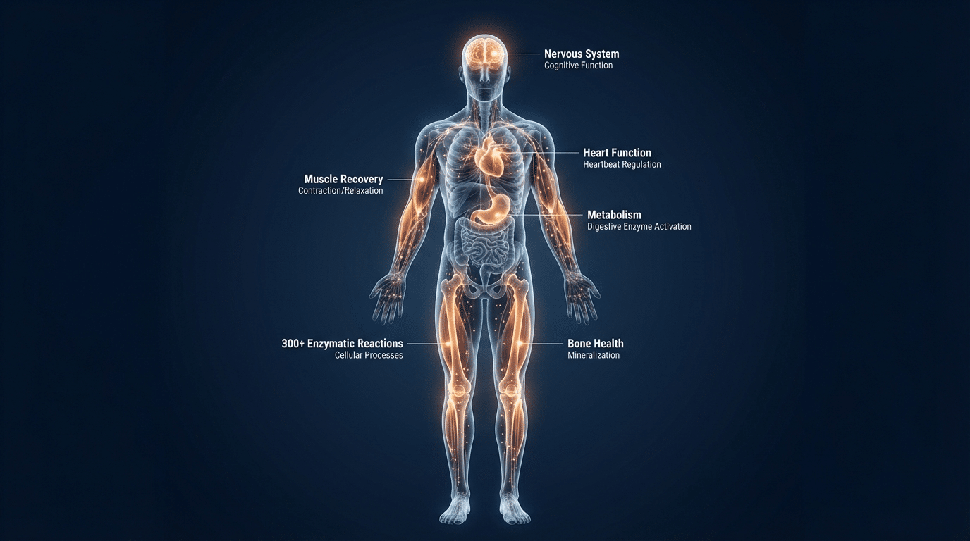 Magnesium ist an über 300 Enzymreaktionen im Körper beteiligt. Es steuert die Muskelentspannung, reguliert das Nervensystem, unterstützt den Energiestoffwechsel und trägt zur psychischen Ausgeglichenheit bei. Kurz: Ohne ausreichend Magnesium läuft im Körper fast nichts rund.