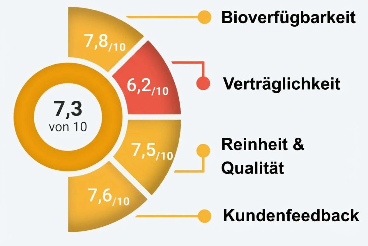 Was nützt das beste Magnesium, wenn der Magen rebelliert? Für viele Anwender ist die Verträglichkeit sogar wichtiger als die Dosierung. Denn wer Magnesium wegen Durchfall oder Bauchschmerzen absetzt, hat am Ende gar kein Magnesium – und das ist die schlechteste Option von allen. Die Chelat-Form (Bisglycinat) hat hier in allen unseren Recherchen und Nutzerbefragungen mit Abstand am besten abgeschnitten. Besonders für Menschen mit empfindlichem Magen-Darm-Trakt ist dieses Kriterium oft der entscheidende Wendepunkt.